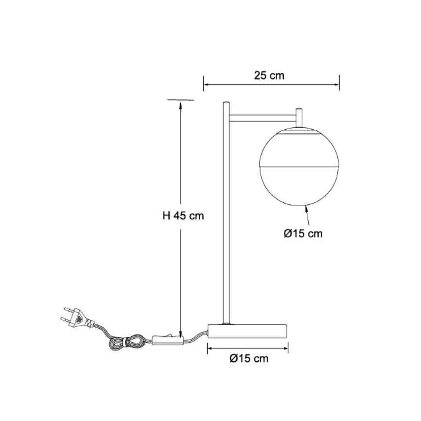 The lamp measures L25cm x H45cm. E14 max 18W.